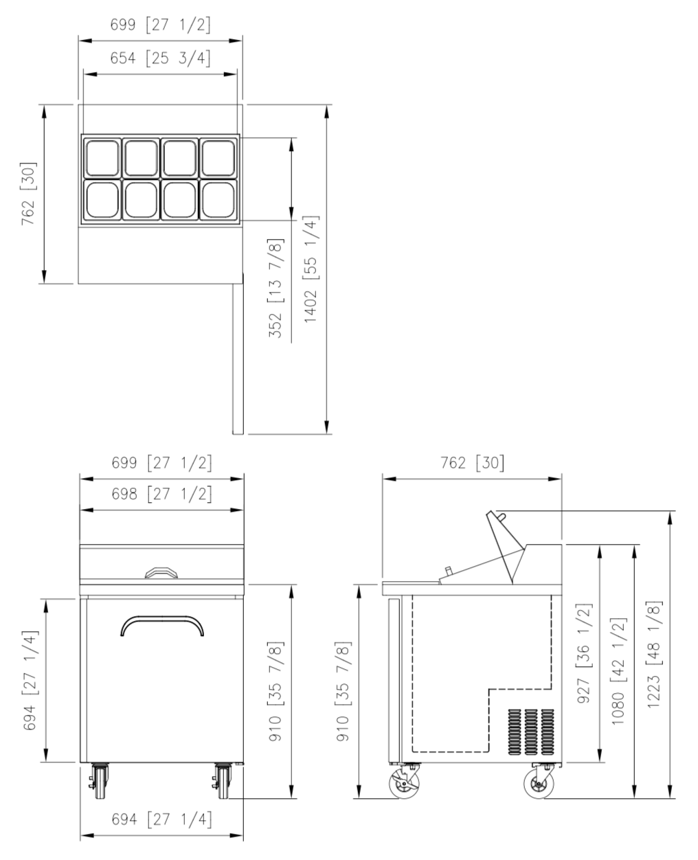 – 70-degree-open and insulated stainless steel covers eliminate heat transfer and protect products when closed