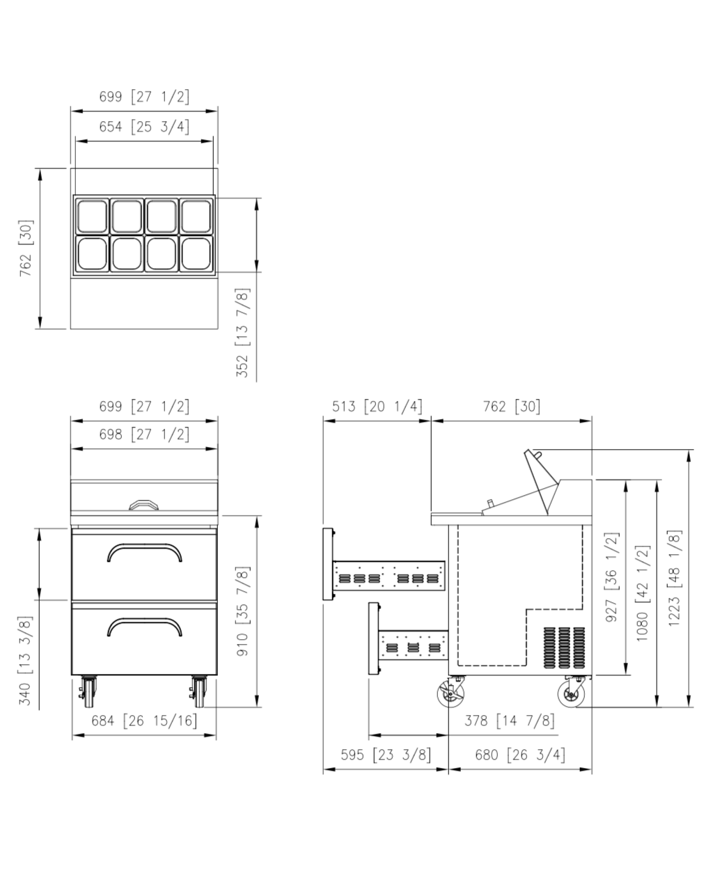 Insulated stainless steel covers eliminate heat transfer and protect products when closed