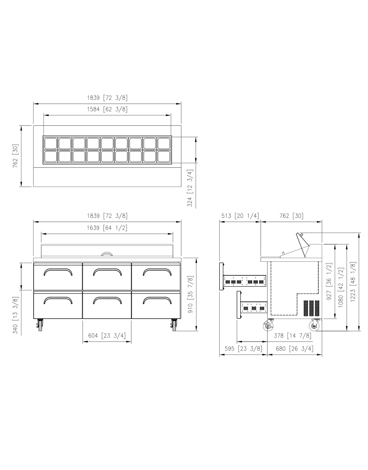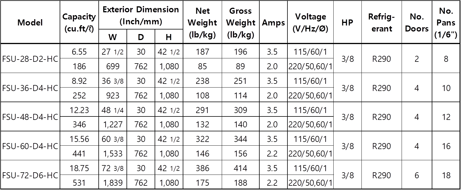 Additional Row of Pans (6"deep) Provides Greater Capacity