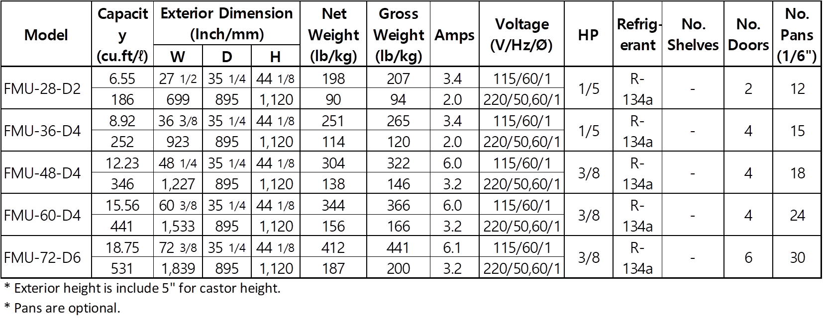 Additional Row of Pans (6" deep) Provides Greater Capacity