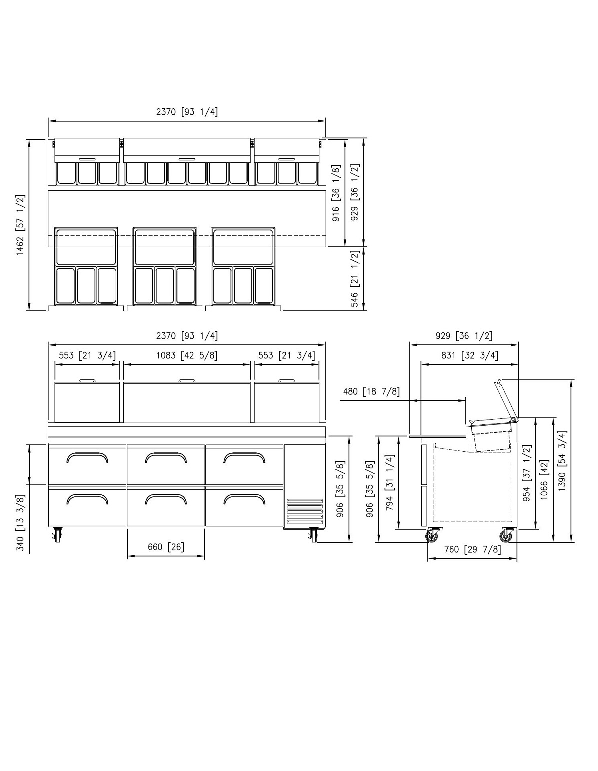 Insulated stainless steel covers eliminate heat transfer and protect products when closed
