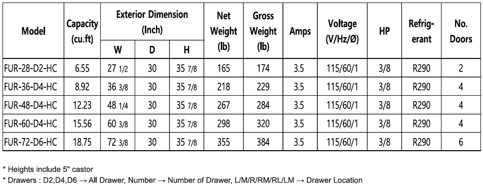 Door / Drawer combination models require customer to designate door / drawer orientation