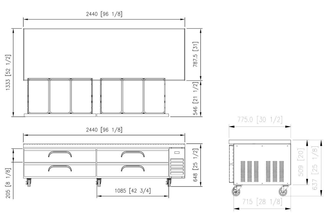 One-piece heavy duty 16 gauge (1.2mm) reinforced stainless steel top