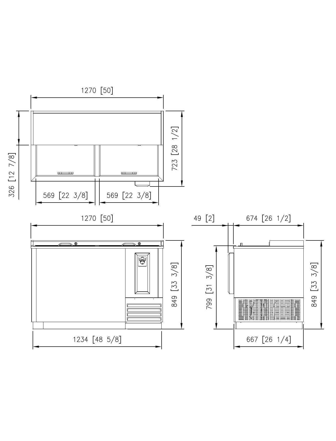 Foamed in place high density polyurethane insulation used throughout the cabinet