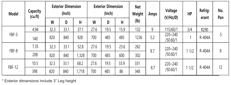 Freezing : +194°F (90°C) to -0.4°F(-18°C) within 240 mins ( Max Temp: -40°F(-40°C))
